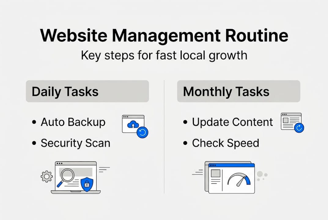 Once you've assessed your site, put consistent management routines in place. Without a schedule, things slip. A plugin goes unupdated, a backup fails silently, and one day your site is down during your busiest season.